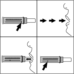 - Close lips tightly around the mouthpiece. In one breath, blow as hard as you can;