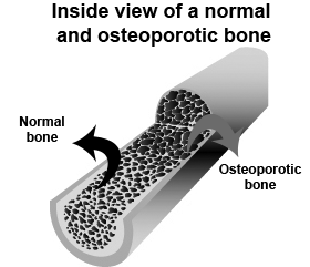 Osteoporosis is a disease that causes the bones to deteriorate. As bones lose mass, they become more porous. This makes them more fragile, which increases the risk of fractures.