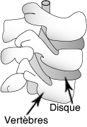 La colonne vertébrale sert de support à notre squelette et de protection pour les nerfs et la moelle épinière (substance molle et graisseuse de l'intérieur de la colonne vertébrale). Elle est composée de 33 petits os articulés appelés vertèbres. Celles-ci sont séparées par des « coussins amortisseurs », les disques intervertébraux. Ces disques sont constitués d'une bordure fibreuse et d'un centre gélatineux. Ils servent à amortir les chocs, supporter la pression et contribuent à donner sa souplesse à la colonne. Ces disques s'imbriquent parfaitement entre les vertèbres.